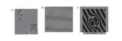 當(dāng)把這幅圖縮小時(shí),a和b的條紋不可見(jiàn),但是c圖中的莫爾條紋仍能夠清楚地看到。