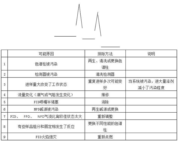 2、再此討論的基線(色譜峰)異變,是指按已知色譜分析方法操作時,得到的色譜圖與沒有問題的已知色譜圖比較,出現某些組分峰畸變、“鬼峰”或基線不正常。或者說,對于一個正在使用的色譜分析方法,由于不要求或出于無奈時,有些峰分不開、拖尾或峰型不對稱等并不影響方法的實施,就不屬于儀器有故障,否則應重新修改、審定原來的色譜分析方法。