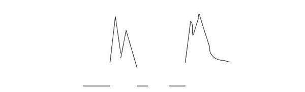 色譜圖形狀隨色譜方法和檢測記錄的方式不同而不同,迎頭色譜和頂替色譜的色譜圖為一系列臺階;在洗脫法色譜中,若采用微分型檢測器時,分離組分的檢測信號隨時間變化的圖形為近似于高斯分布的一組色譜峰群,色譜圖的縱坐標為檢測器的響應信號,橫坐標為時間、體積或距離。