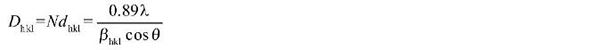 XRD測量納米材料晶粒大小的原理是當材料晶粒的尺寸為納米尺度時,其衍射峰型發生相應的寬化,通過對寬化的峰型進行測定并利用Scherrer公式計算得到不同晶面的晶粒尺寸。對于具體的晶粒而言, 衍射hkl的面間距dhkl和晶面層數N的乘積就是晶粒在垂直于此晶面方向上的粒度Dhkl。試樣中晶粒大小可采用Scherrer公式進行計算: