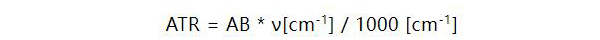 由此可見,采用ATR 附件測得的紅外光譜在高波數和低波數的穿透深度不同。低波數吸收峰的峰強強于高波數的峰強。為了與普通透射紅外光譜進行比較,需要對 ATR附件測得的光譜進行校正,以1000cm-1為基準,校正公式: