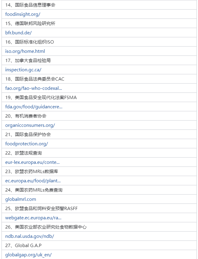 檢測(cè)人經(jīng)常會(huì)用到的一些網(wǎng)站,網(wǎng)站內(nèi)容涉及標(biāo)準(zhǔn)法規(guī)下載、專業(yè)信息查詢、科技動(dòng)態(tài)、行業(yè)資訊、行業(yè)統(tǒng)計(jì)數(shù)據(jù)等。只要從事檢測(cè)行業(yè),肯定有你需要的。