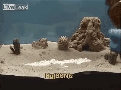 花絮:重鉻酸銨有個外號叫“維蘇威之火”,就是因為它的這個效果。它在焰火和早期攝影術(shù)里都有應(yīng)用。搭配硫氰酸汞感覺像是召喚了克蘇魯……