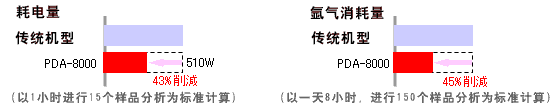 (氬氣消費量和傳統機型相比減少45% ※2)(※1 以1小時進行15個樣品分析為標準計算 ※2 以一天8小時,進行150個樣品分析為標準計算)