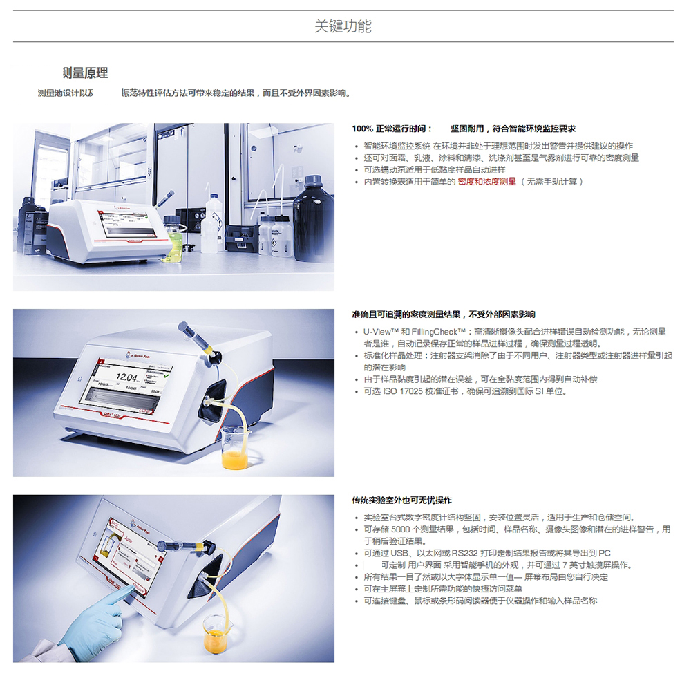 DMA 1001 和 DMA 501 獨立密度計輕便小巧,能輕松放置在生產區域、倉儲或實驗室的狹小空間內,讓您在一個角落就可進行快速的質量檢查。即使樣品特性復雜, U 型振蕩管也能夠運用 Pulsed Excitation Method 方法,在全面了解自身振蕩特性的基礎上給出穩定的密度測量結果。工作程序簡單易學,無論是實驗室化學專家、 生產線員工還是暑期實習生, 均能輕松熟練上手。